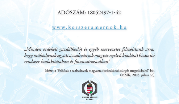 A szabványfordítások kérdése régóta központi téma a Kamaránál. Most – az egyéb utak mellett – arra is lehetőség nyílik, hogy a kollégák adójuk 1%-át befizetve elősegítsék a fordítások ügyét.