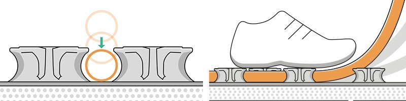 A magyarországi gyakorlatban a „pogácsás” nevet kapta ez a fektetési megoldás, amelyen egyszerűen és gyorsan vezethető a fűtéscső, minimálisan 5 cm-es osztástávolságban. A csövet a tekercsről lábbal a pogácsák közé kell taposni, melyet tekercselő szerszám segítségével egy ember is el tud végezni. A profillemez kialakítása lehetővé teszi, hogy az esztrichbeton körbevegye a csövet, melynek használatos mérete, RAUTHERM SPEED 16×1,5 mm. A minőségi lemezek tetején kasírozott műanyag fólia található, hogy az esztrich-nedvesség a lemez belsejébe ne tudjon beszivárogni.