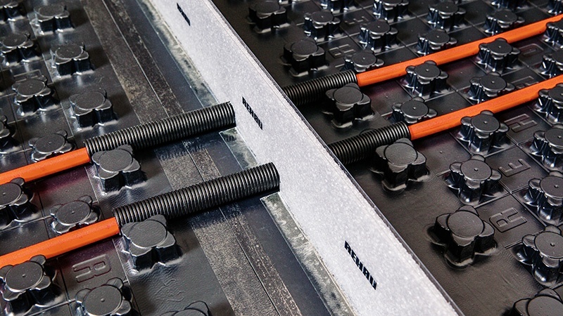 A csőfelület kiváló csúszási tulajdonságai és a tökéletesen összehangolt geometria a cső és a lemez között erőkímélő, problémamentes bepattintást biztosít és akár 20%-kal gyorsabb a fektetés a hagyományos felületfűtő csövekhez képest.