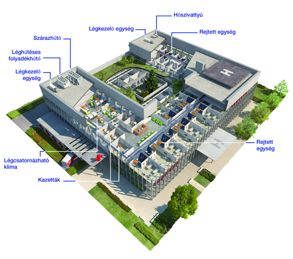 A szállodák különböző vendégkört szolgálnak ki, változó felhasználási körülmények és területek mellett – a recepciótól a szaunáig, a medencétől a vendégszobákig. Megbízható HVAC rendszerekre van szükségük a kórházaknak is ahhoz, hogy megfeleljenek a higiéniai és a kényelmi elvárásoknak a műtőktől a kórtermeken át a váróhelyiségekig.