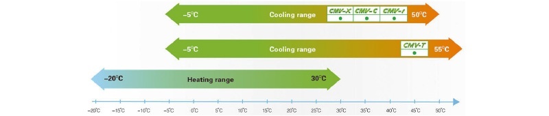 A CMV-mini sorozat jó megoldás lehet olyan lakóépületekre vagy kisebb irodaházakra, amelyeket már multisplittel nem lehet megszerelni – mondjuk a hosszú csővezeték szakaszok miatt. A kültéri egységek 8 kW-tól egészen 33,5 kW teljesítményig elérhetőek. Teljesítménytől függően DC inverteres iker forgódugattyús, vagy DC inverteres Scroll a kompresszor.