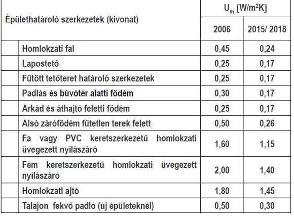 Hőátbocsátásitényező követelményértéke (kivonat)