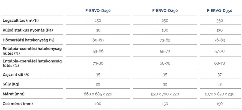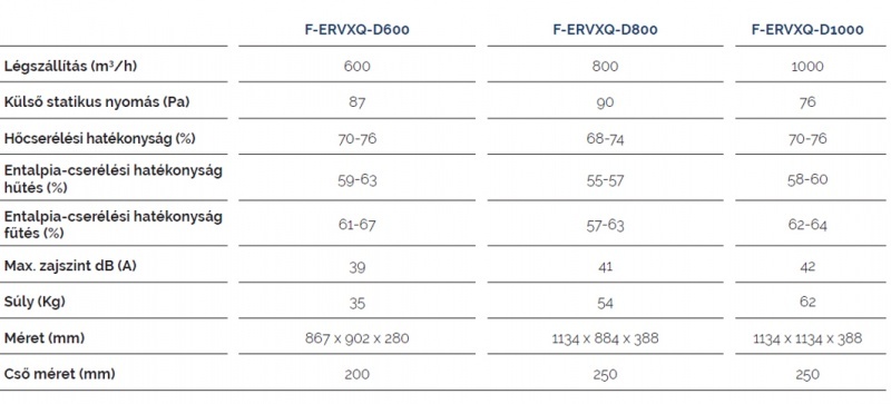 - 6 különböző teljesítmény nagyság (150–1000 m3/h)