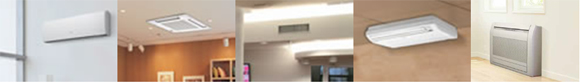 Oldalfali, kazettás, légcsatornázható, parapet/mennyezeti és padlóra állítható berendezések lakossági és kereskedelmi klímatechnikai igények kiszolgálására.