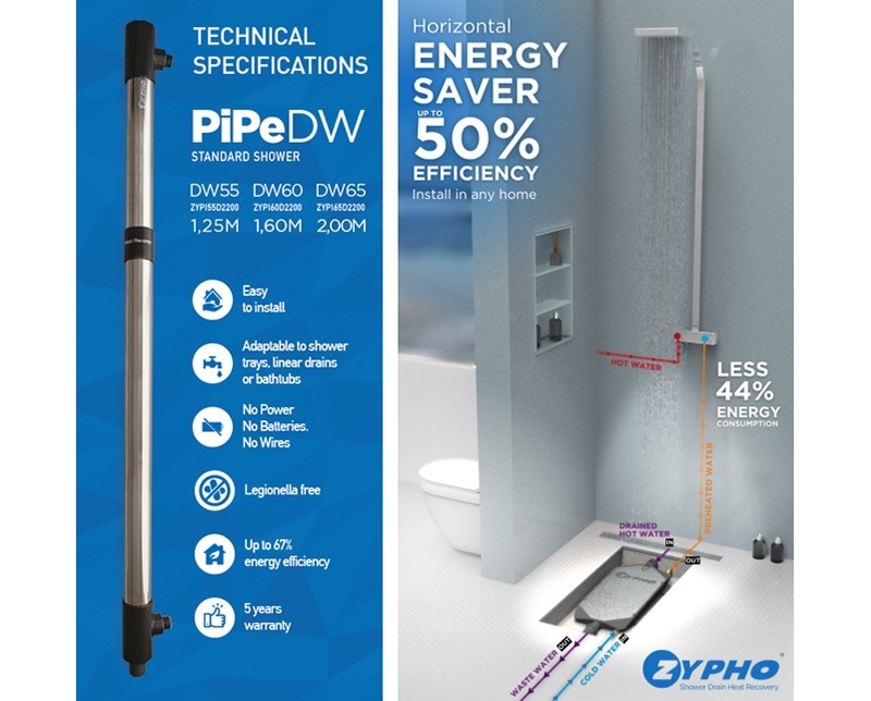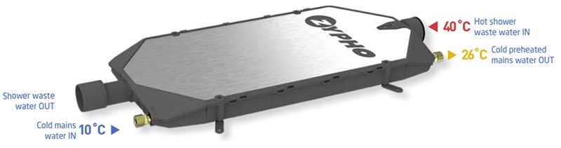 Az alábbi hővisszanyerési technológia a lefolyóba kerülő víz elpazarolt hőjét használja fel a hideg víz előmelegítésére, így értékes hőenergiát takarít meg a zuhanyzáskor.