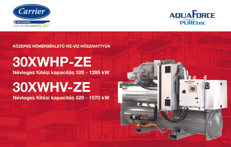 A Carrier bemutatja a vadonatúj, egyéni igényekhez szabott 30XWHP/V-ZE víz-víz hőszivattyú-családot, mely az új R-1234ze PUREtec hűtőközeget használja, így megfelel a fluortartalmú gázok kibocsátásának csökkentéséről szóló 2014-es F-Gas szabályozás követelményeinek. Az új AquaForce PUREtec modellek akár 5%-kal energiahatékonyabbak, mint az R-134a hűtőközeget használó, korábbi típusok, és akár 85 °C-os meleg víz előállítására is képesek.