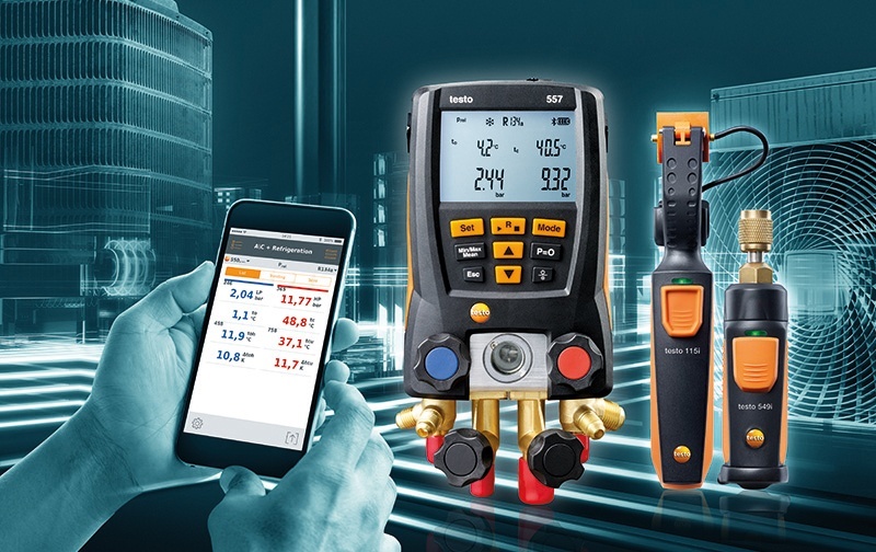 A Testo digitális műszereivel lépést tud tartani az ilyenkor megnövekedett számú megrendelésekkel. A pontos technológia optimális beállítást tesz lehetővé, legyen szó hűtéstechnikai rendszerekről vagy hőszivattyúkról. A műszerek automatikusan kiszámítják a túlhevítés és utóhűtés értékeket, valamint minimum, maximum és átlagértékek megjelenítésére is alkalmasak. A díjmentesen letölthető applikációval a testo 550 és a testo 557 digitális szervizcsaptelepek csatlakoztathatók egy okostelefonra vagy táblagépre Bluetooth kapcsolattal.
