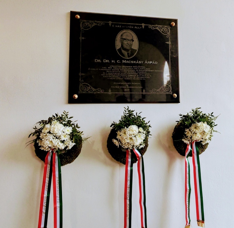 2024. február 29-én, a XIII. Kéménykonferencia után tízenheten elutaztunk Csurgóra, Macskásy Árpád professzor úr szülővárosába, hogy megkoszorúztuk az emléktábláját abból az alkalomból, hogy ezen a napon lett volna 120 éves.