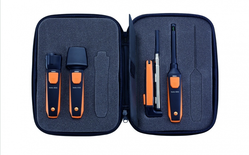 A Smart Probes műszerek megvásárolhatók külön-külön, vagy szettben is. A klímatechnikai szetthez (testo 405i hődrótos légsebességmérő, testo 410i szárnykerekes légsebességmérő, testo 605i páratartalom és hőmérsékletmérő, testo 805i infra hőmérsékletmérő) egy praktikus, könnyen szállítható műszertáska is jár.
