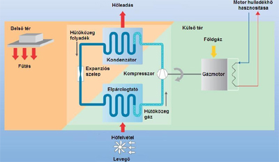 – Gázmotorral hajtott kompresszoros hőszivattyú (GHP)