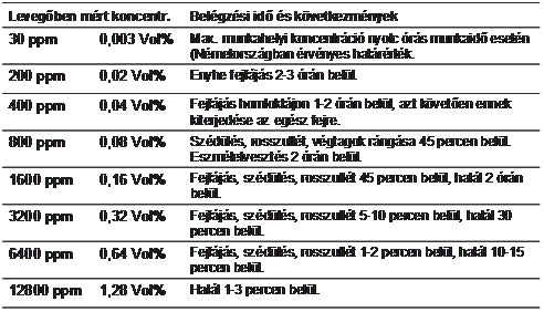 1. táblázat A szén-monoxid egészségre gyakorolt hatásai levegőben