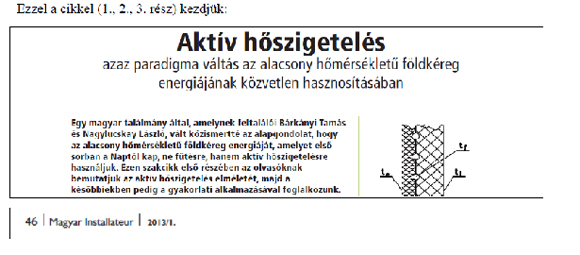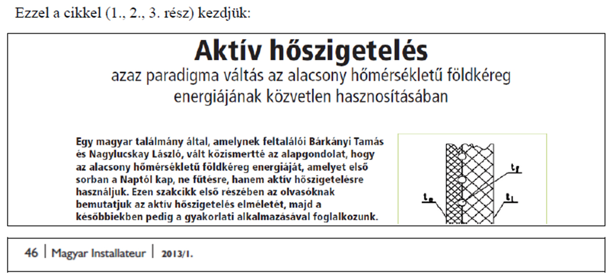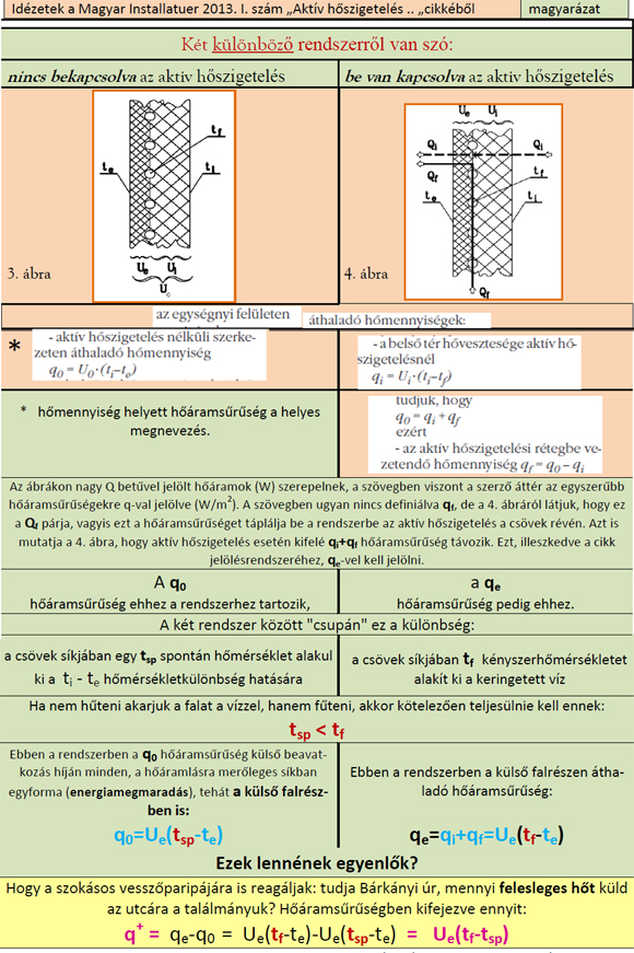 Kedves Péter! Véleményem szerint ez a bizonyos aktív hőszigetelés nem valósítható meg. Illetve kivitelezni lehet, de szinte biztos, hogy nem javít, hanem ront a helyzeten. Számomra rejtély, hogyan gondolták a szerzők. Beismerem, nem veszem a fáradságot, hogy az eredeti dokumentumokat megnézzem. Várok, hátha beírnak az e-gepeszre. De, lehet, hogy meggyőzték őket az itt olvasható érvek.