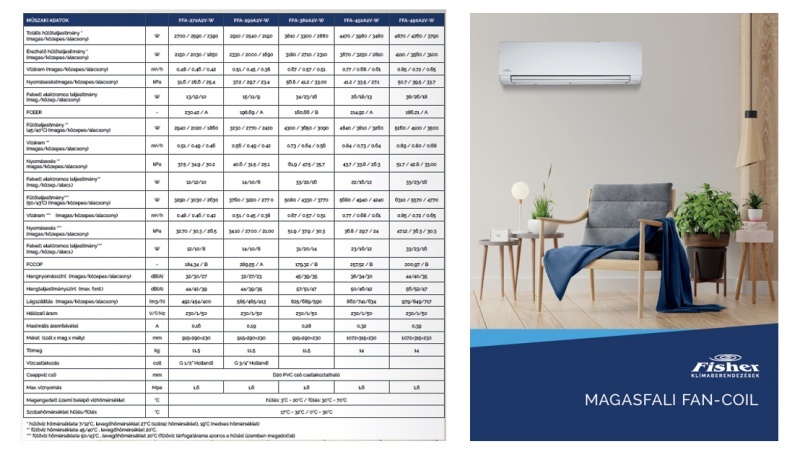 A Fisher magasfali fan-coil sorozat tökéletesen illeszkedik modern hőszivattyús rendszerekhez, így egész évben hatékony komfortot biztosít. Ehhez továbbra is elérhetők a Fisher termékpalettájáról az R32-es split és monoblokk hőszivattyúk, az új R290-es Aquanova hőszivattyúk, nagyobb projektekhez a szintén új R290-es kerekedelmi hőszivattyúk 42 és 78 kW teljesítménnyel!