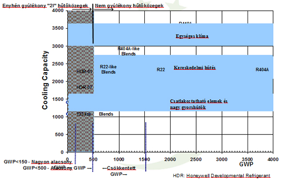 Alkalmazás Oldat GWP-csökkenés Teljesítmény