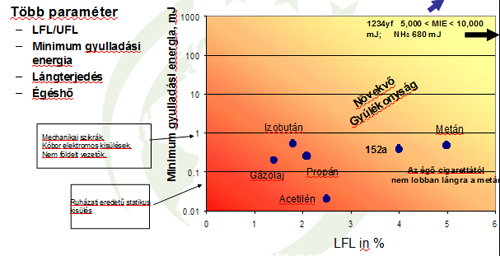2: alacsony gyúlékonyság LFL 3.5% (60°C); égéshő <19´000 kJ/kg