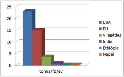Látható, hogy Kína a legnagyobb kibocsátó, ugyanakkor egy főre fajlagosítva az egyik legalacsonyabb.