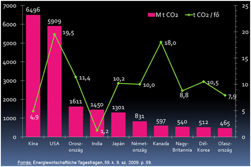 Globális szinten azonban a fentiek nem minden esetben teljesülnek. Ez olyan tényekre vezethető vissza, mint például a természeti erőforrások egyenlőtlen regionális eloszlása (a Föld ismert kőolajkészletének 61,4 %-a a Közel-Keleten található, stb.), illetve a nagy készletekkel rendelkező országok politikai instabilitása. További érdekesség szűrhető le a 2. ábráról, amely a világ 10 legnagyobb CO2 kibocsátó államát mutatja be: