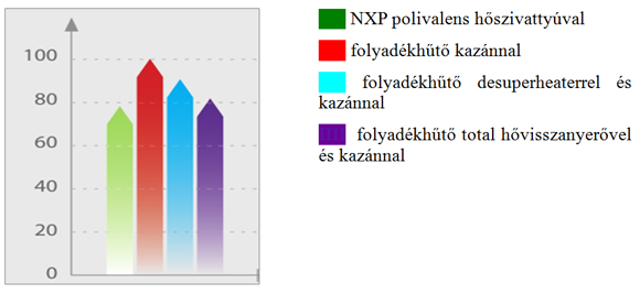 Nyáron, hűtési üzem során, amikor a berendezés elsődlegesen hűtési igényeket lát el, akkor 55°C primer oldali kilépő hőmérséklet estén is akár +4°C-os hideg vizet képes előállítani.