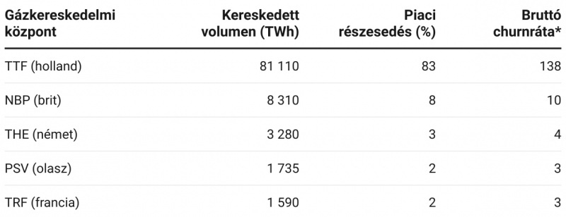 A fő európai gázkereskedelmi központok mutatói (2024)